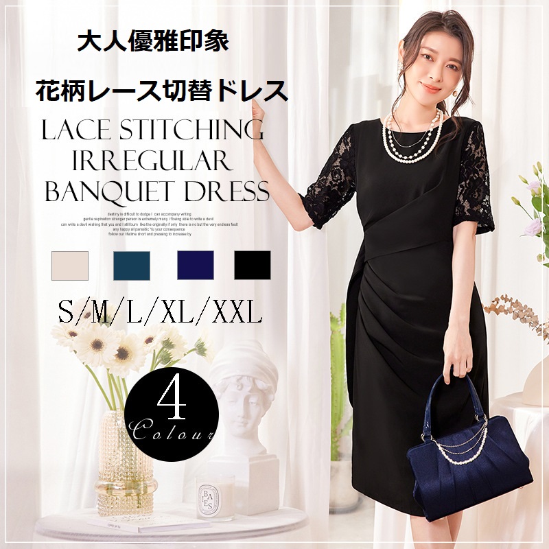 即納★パーティー 二次会 結婚式 披露宴 二次会 大人上品 レース切替 ドレスワンピース