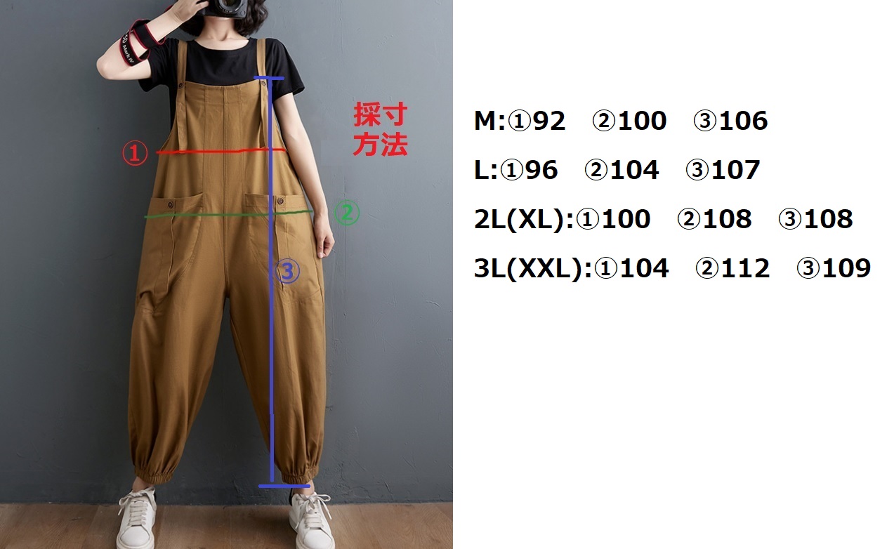 M~3L★サロペット 裾ゴム ロングサロペット オーバーオール ハーレムパンツ